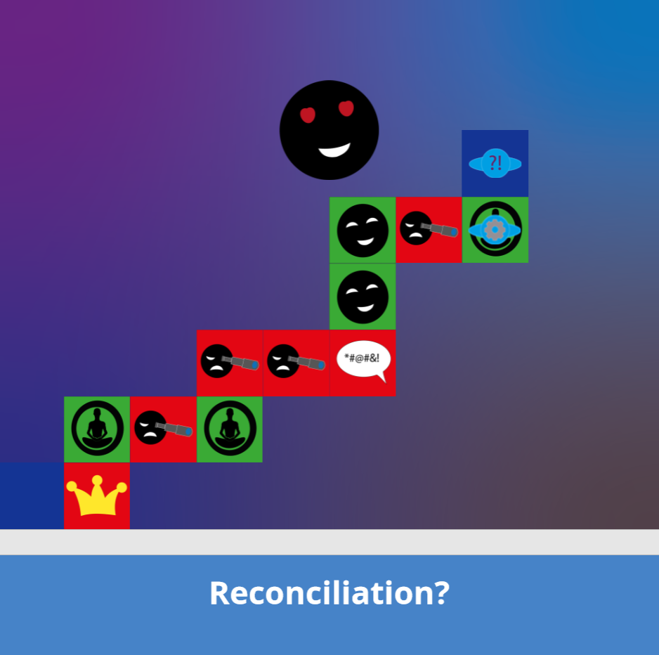 Try to repair the relationship between the two characters by making a path of emotions between. Be careful you have to choose every emotion in a limited amount of time and you musn't put the same emotion three time in a row.